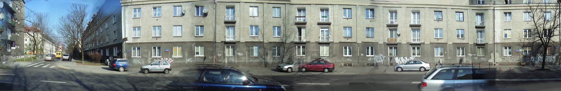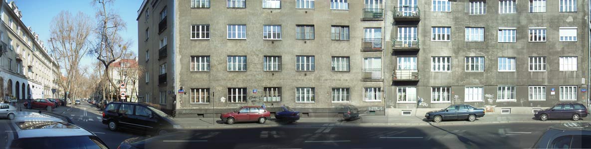 W tym miesiącu inaczej, zamiast serii zdjęć jedno, ale bardzo, bardzo długie. To próba zrobienia na zdjęciu całej caluśkiej ulicy, jak długa. Zdjęcie zrobione w Warszawie, na Mokotowie i przedstawia ulicę Chełmska. Jeśli mieszkasz na Chełmskiej i na wyższym piętrze, to przepraszam, ale się nie załapałeś, moje okno też przepadło. Przepraszam, mieszkańców ulicy Zakrzewskiej, taaak Wasza ulca jest dużo szersza, lecz w czasie montażu tego zdjęcia, spodobało mi się że te domy wychodza w stylu Chagalla, czyli lekko krzywe, że zmieniają się proporcje, a po ulicy jeżdżą samochody widma.